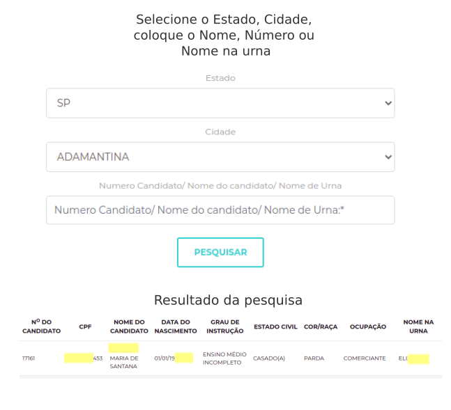 majoritárias e proporcionais, que, retornará numa modalidade, informações pessoais sobre o (a) mesmo